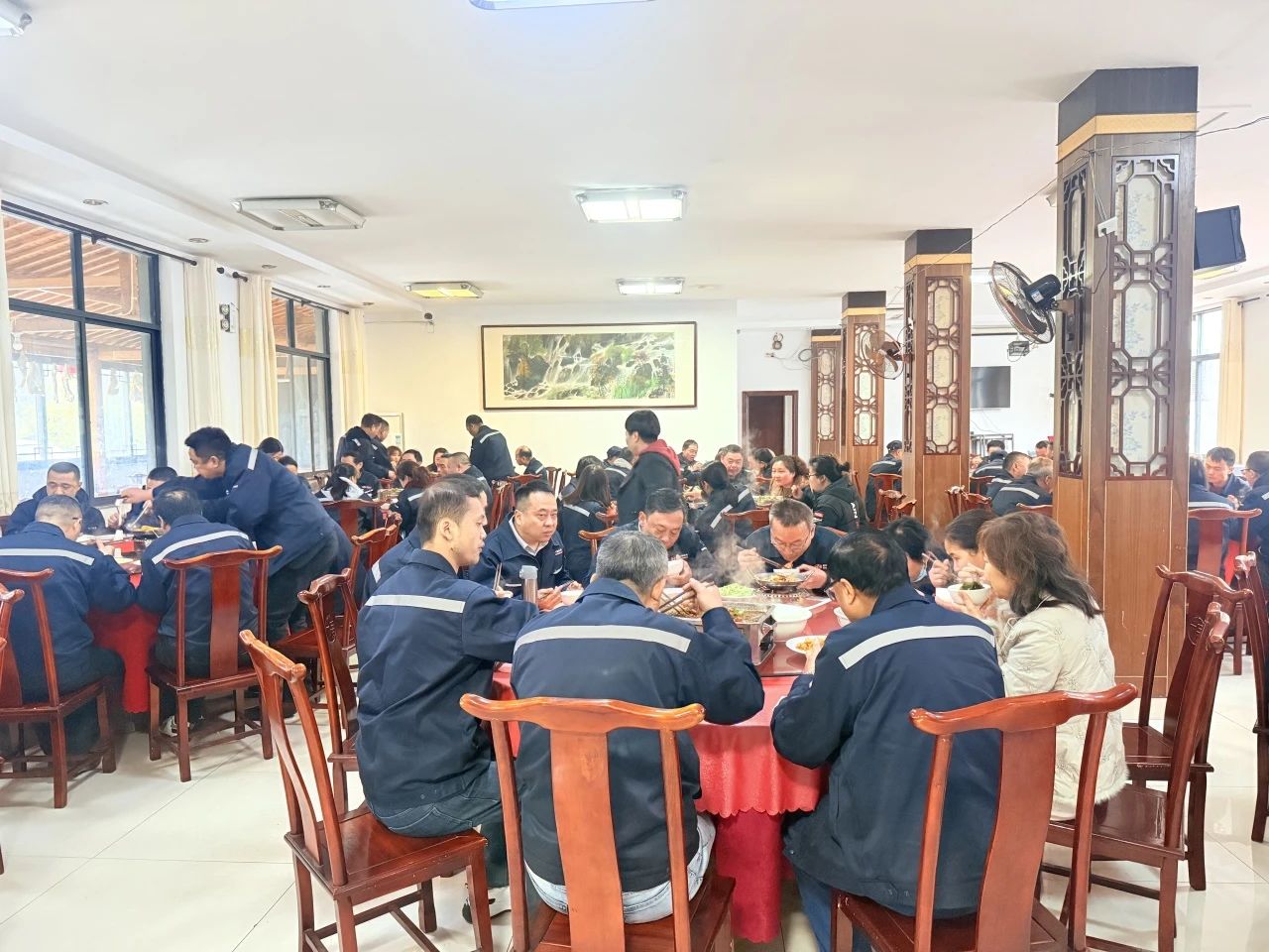 臨近用餐時(shí)間,大家來到當(dāng)?shù)匾患覙O具徽州特色的餐廳用餐。木質(zhì)的桌椅、雕花的窗欞,處處透露著古樸的氣息。餐桌上,一道道色香味俱全的徽菜陸續(xù)上桌,員工們圍坐在一起,一邊品嘗著地道美食,一邊分享著游玩的趣事。
