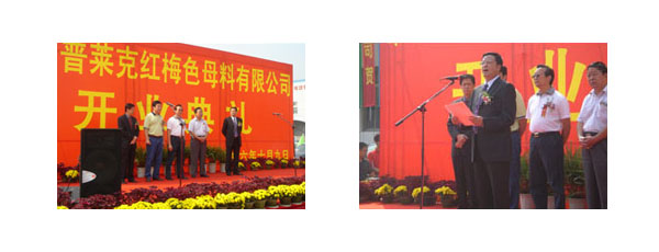 10月9日,常州市紅梅塑料色母料有限公司舉行了新廠(chǎng) — 常州普萊克紅梅色母料有限公司盛大的開(kāi)業(yè)慶典儀式,參加這次活動(dòng)的480多名來(lái)賓中主要包括公司的重點(diǎn)業(yè)務(wù)單位、供應(yīng)商以及部分協(xié)作單位的有關(guān)人員,其中包括—些國(guó)外重要的合作伙伴等,活動(dòng)期間公司還為長(zhǎng)期合作的36個(gè)分銷(xiāo)商舉行了授牌儀式。