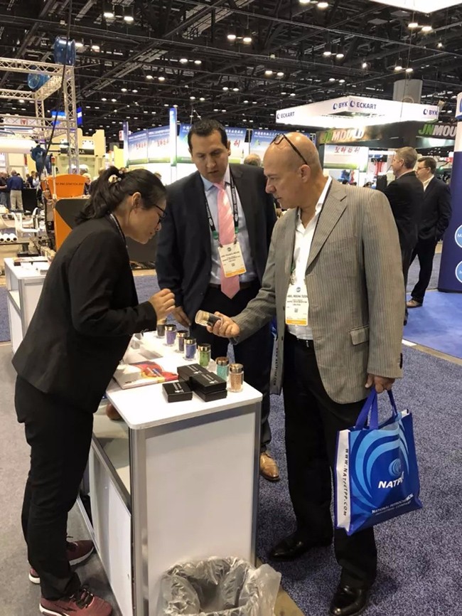 ▲ 紅梅展位上,新、老客戶紛至沓來(lái),紅梅為此次NPE美國(guó)塑料展做了精心的準(zhǔn)備,不僅有相關(guān)產(chǎn)品的宣傳冊(cè)書(shū)面資料,同時(shí)還有色母粒產(chǎn)品現(xiàn)場(chǎng)展示,讓客戶們能夠全方面的了解紅梅的母料產(chǎn)品。