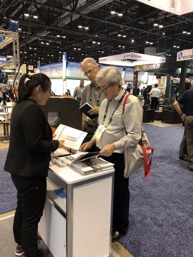 ▲ 專業(yè)熱情的紅梅人,在美國(guó)塑料展盡心為客戶解讀產(chǎn)品訊息